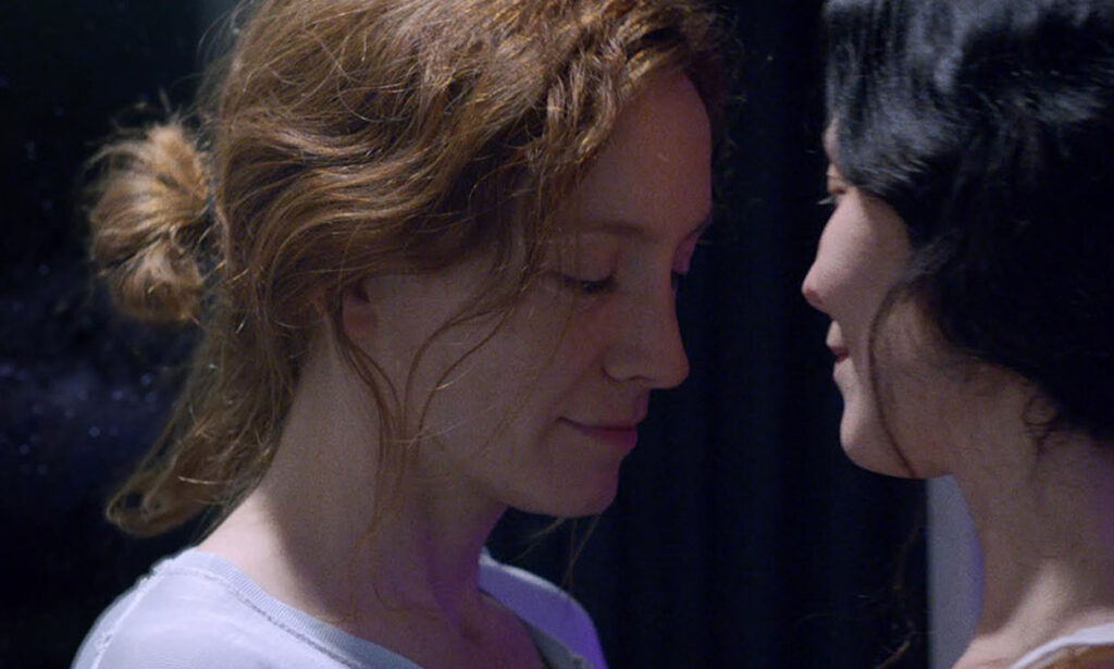 Aniara takes place on a spaceship en route to a Mars colony. The journey is supposed to take a matter of weeks. But an asteroid knocks the ship off-course and damages the fuel supply. What was supposed to be temporary transport for the passengers becomes their permanent home. The film’s lead character is a woman in charge of an AI screen named Mima. Mima provides peaceful nature images for the passengers. As the passengers’ time in space becomes permanent, time spent gazing at Mima’s images becomes a high value currency. But after some years, Mima self-destructs out of despair for what they have seen of humanity. Without Mima’ life on Aniara gets worse and weirder still. Also, that woman in charge of Mima (who never gets a proper name) has a relationship with a woman named Isagel.