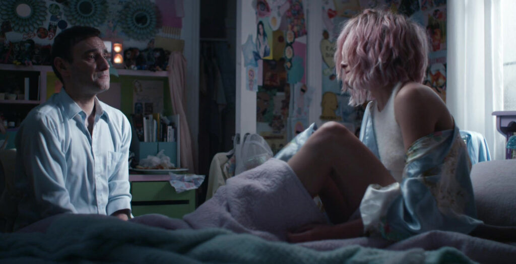 So, Daddy Issues is actually decently written. It’s also pretty well directed. Yes, relies too much on fancy tricks and visual aesthetic which sometimes plays into this movie feeling obnoxious. But none of said fancy tricks are poorly executed. And the film absolutely has a vision and the skill to realize that vision. While Daddy Issues’ reliance on montage and a mixture of slo-mo and sped up footage isn’t my favourite, it doesn’t feel out of place for the film. Daddy Issues is a highly aesthetic film. While your mileage may vary for how much you enjoy that aesthetic, you can’t say that it was executed poorly. If it was, the aesthetic wouldn’t have come across quite so loud and clear.