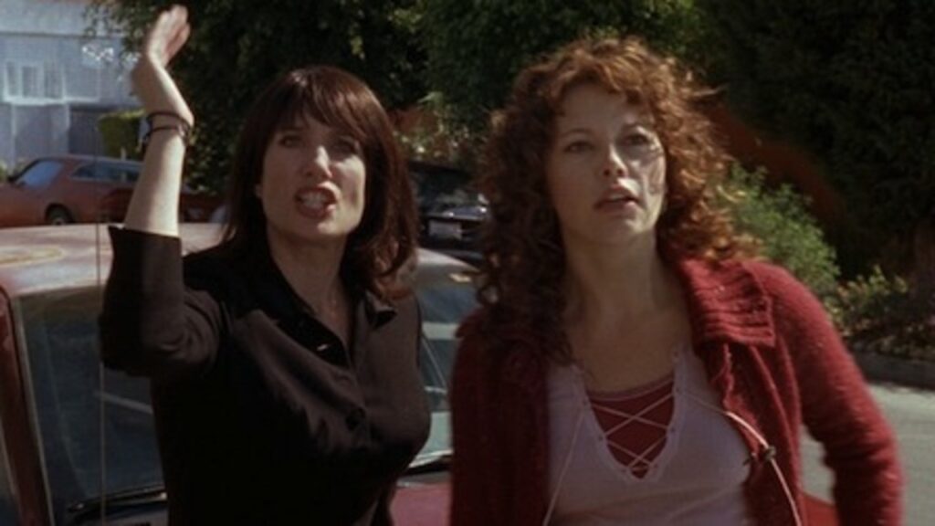 Even when the jokes don’t age poorly, Scarlet tends to takes its dramatic scenes too far. On the one hand, I admire the fact that they did take them all the way and there certainly was conflict in the film. On the other hand, some of these situations are full anti-jokes. The best example is Scarlet’s mother. Overbearing and shitty mothers are a common comedy staple. And sometimes in the film, it works as comedy. But generally, there’s nothing funny about this mother. She’s emotionally and verbally abusive. When she catches Scarlet and Sabrina in bed, she goes on a homophobic tirade, speaking every worst fear a queer person has when they picture their parents reacting poorly to their coming out. What’s Up Scarlet? is a bit too eager to go full-on angsty drama for a movie that is still tonally a comedy.